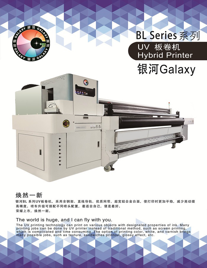 銀河BL系列UV板卷機(jī),采用全鋼架、直線(xiàn)導(dǎo)軌、優(yōu)質(zhì)網(wǎng)帶,超寬鋁合金臺(tái)面,使打印時(shí)更加平穩(wěn),減少晃動(dòng)提 高精度。噴車(chē)升級(jí)可搭配不同噴頭配置,最適合自己,便是最好。 榮耀上市,煥然一新。